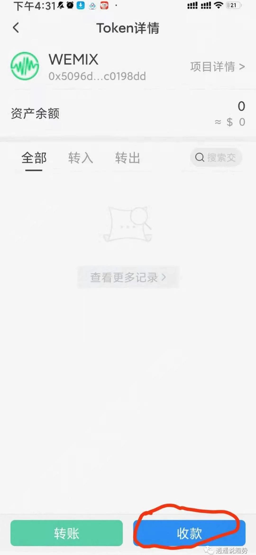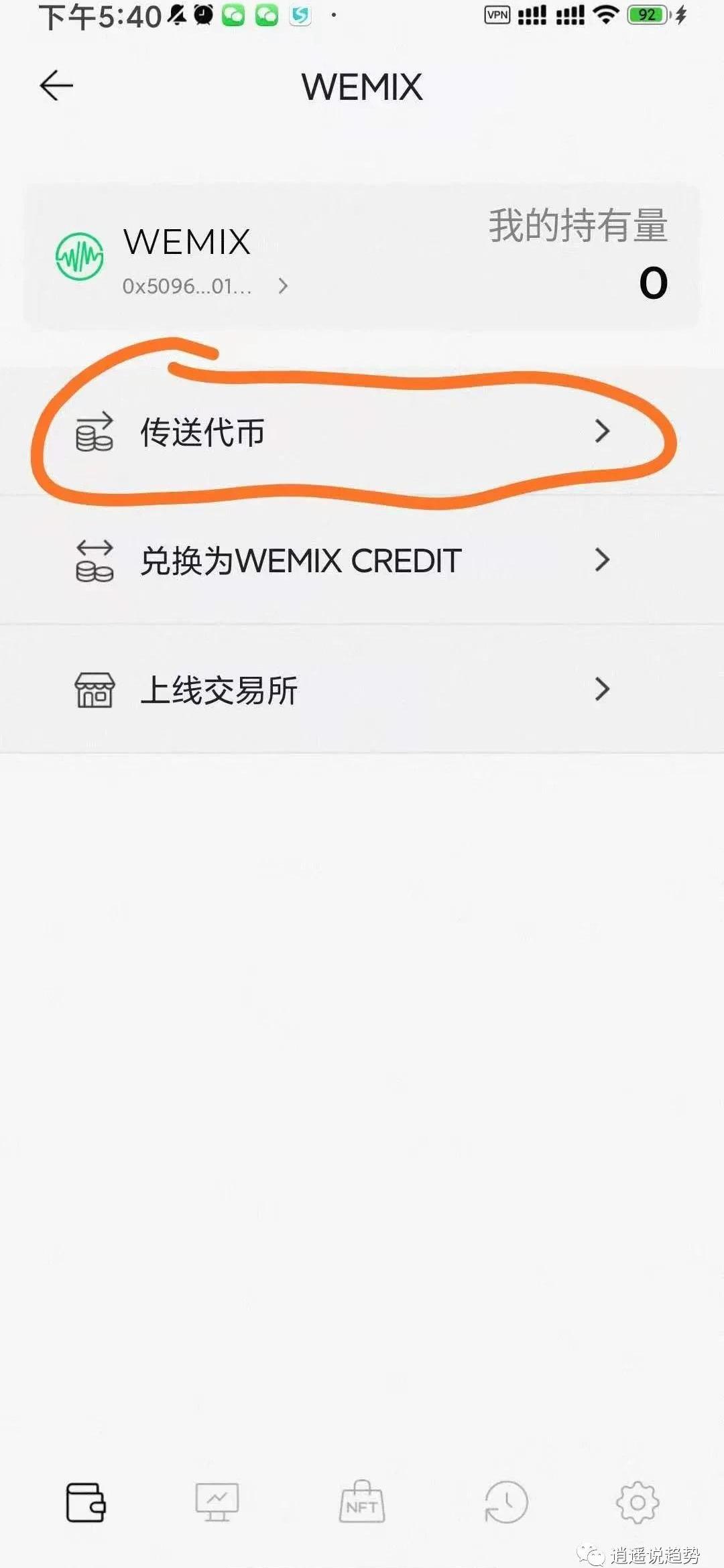 然后会在WemixWallet钱包中会有显示您的wemix余额。4.转出wemix,打开WemixWallet钱包,点击wemix,然后点击传送代币。