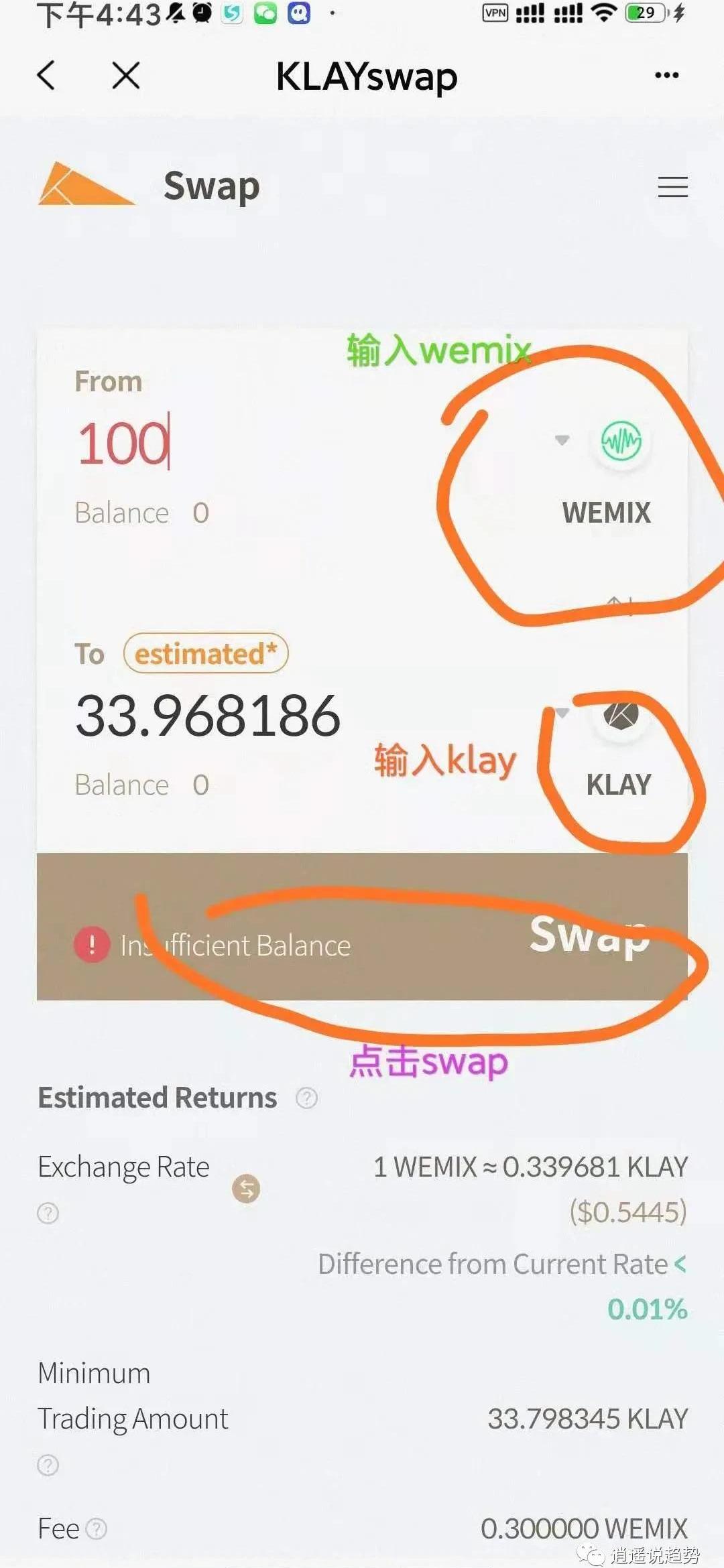 6.将wemix兑换成klay,然后将klay转到币安交易所换成usdt。