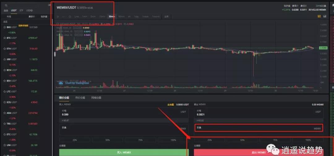 3.在biki交易所找到wemix/usd的交易对,卖出wemix换成usdt。