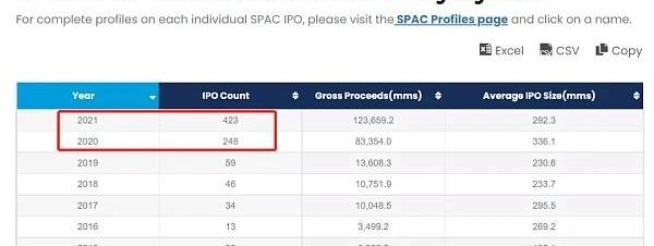 相较于IPO、直接上市和被并购上市,SPAC过程较快,也可融资,成为上市热门方式之选。数据网站SPACinsider显示,今年已有423笔SPACIPO,高于2020年的248笔近1倍,而2019年仅为59笔。