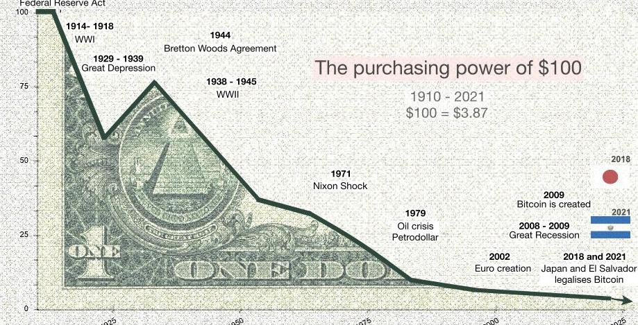为了理解去美元化发生的原因,有必要了解多年来100美元的购买力情况。在70年代,尼克松总统切断了黄金与美元联系,表示货币和汇率应该由市场决定,而不是黄金。但因为一些原因,美元并没有像尼克松所说那样进行,而是通过政府不断印钞来干预。