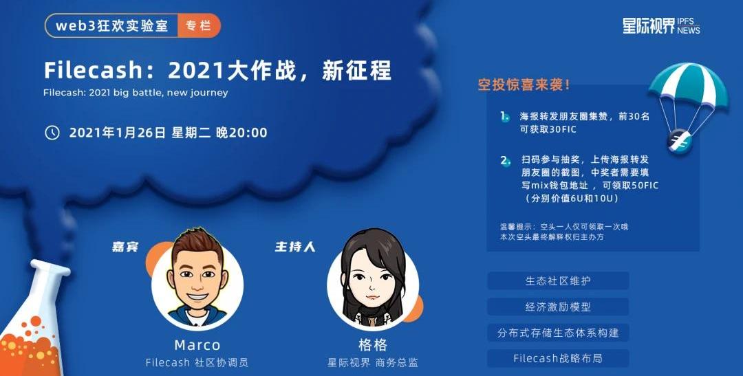 Marco:Filecash社区化建设分国际、国内两部分进行。