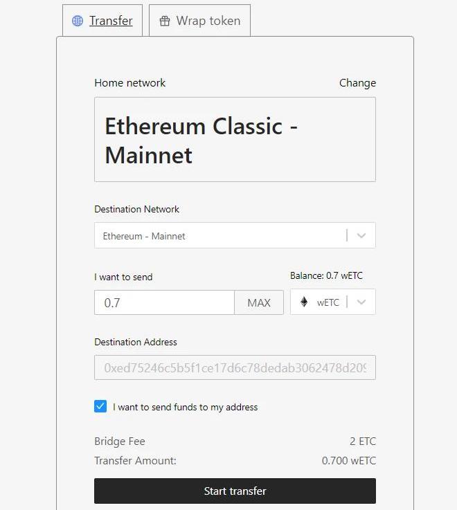 将Wrap的wETC转移到ETH网络上。