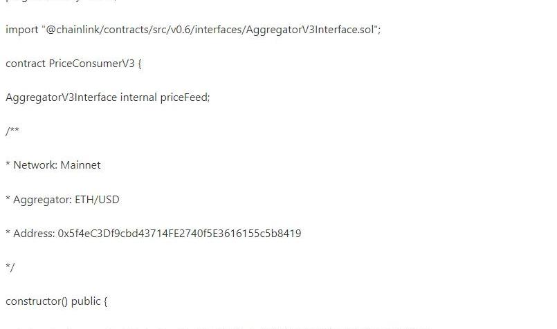 假设我们有一个使用ChainlinkPriceFeeds的合同,看起来像这样: