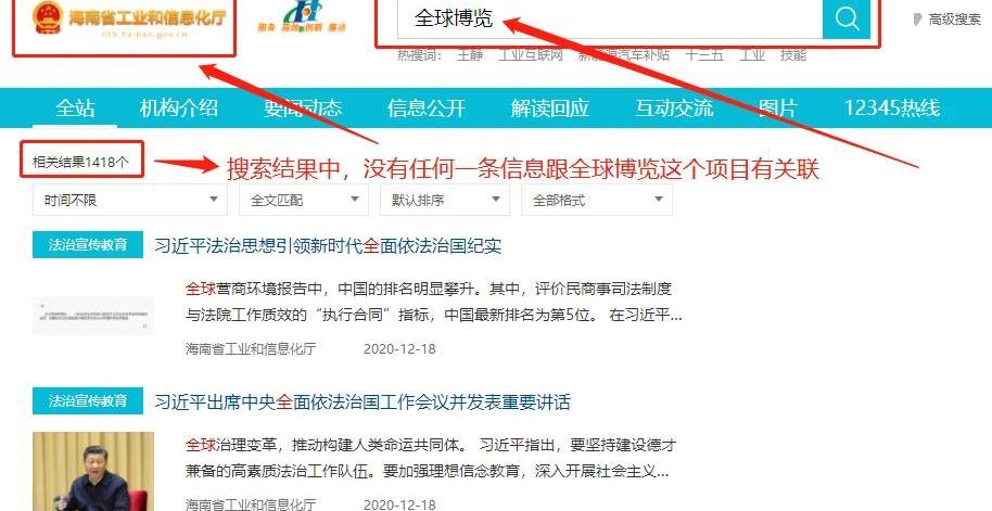 海南省工业和信息化厅官网也查不到跟全球博览这个项目相关的任何信息。