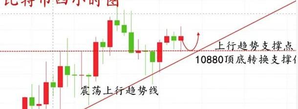 从日线图来看,上比特币连续收三根阳线,形成红三角看涨形态,短线上比特币三连阳之后会出现技术性回调需要,方便后市更好的拉涨,而从点位上来说,比特币已经触及11100前期顶底转换的压力点,大阳拉升触碰到关键压力位,短线回调是必然,今天我们重点就是关注回调力度,若跌破10600,那么本轮回调就会演变为见顶下跌,若维持于10800上方震荡,则二次反弹将会直接突破11100。