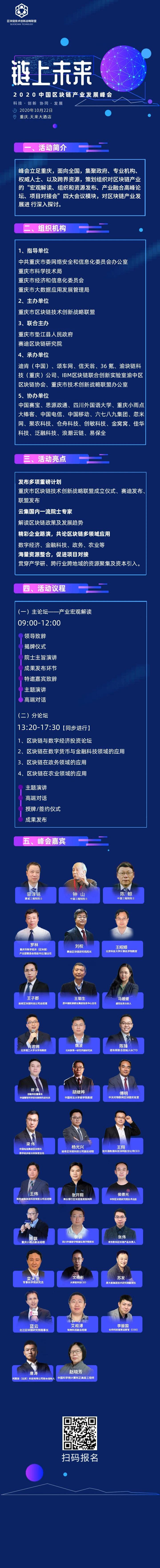 10月22日,链上未来·2020中国区块链产业发展峰会将在重庆举行,为期一天。