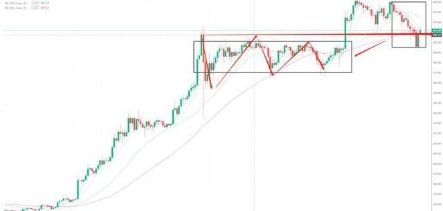 4H周期上涨强势新中枢在市场题材的影响下,回跌入了上涨之前的前中枢之中;中枢发生了扩展和延伸,后续走势变成了我们之前分析的大级别震荡行情了。