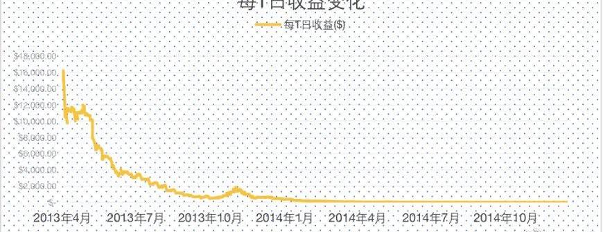 每T的挖矿收益从2013年至今,逐渐走下降趋势。