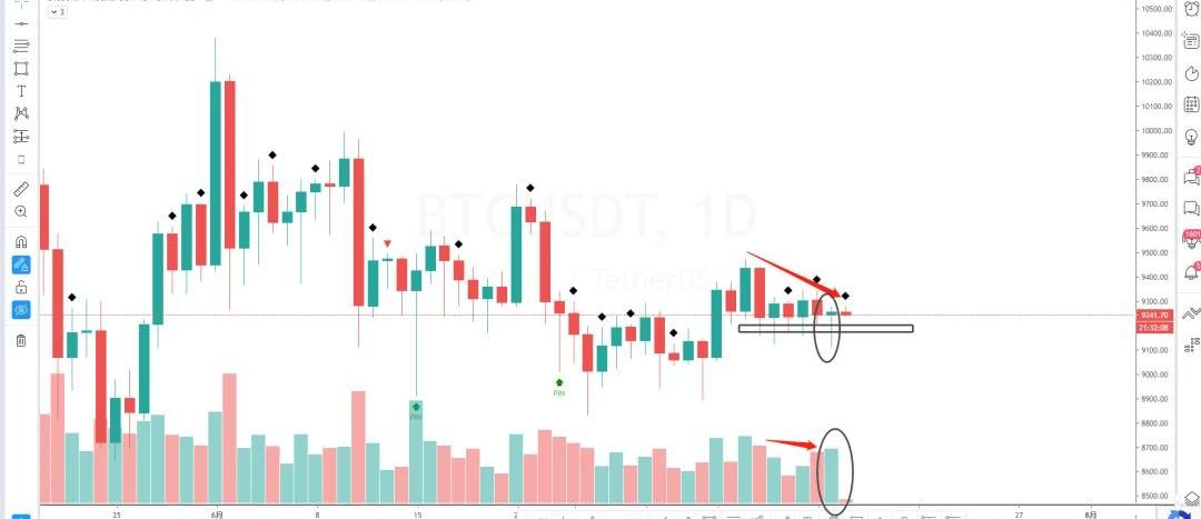 打穿9200结构位之后没有收在低位,反而放量拉了回来,空头在量呢接近的情况下呈现一定程度的不跟随,9150附近的买盘很坚定,日图收出增量Pinbar,日内给出偏多观点