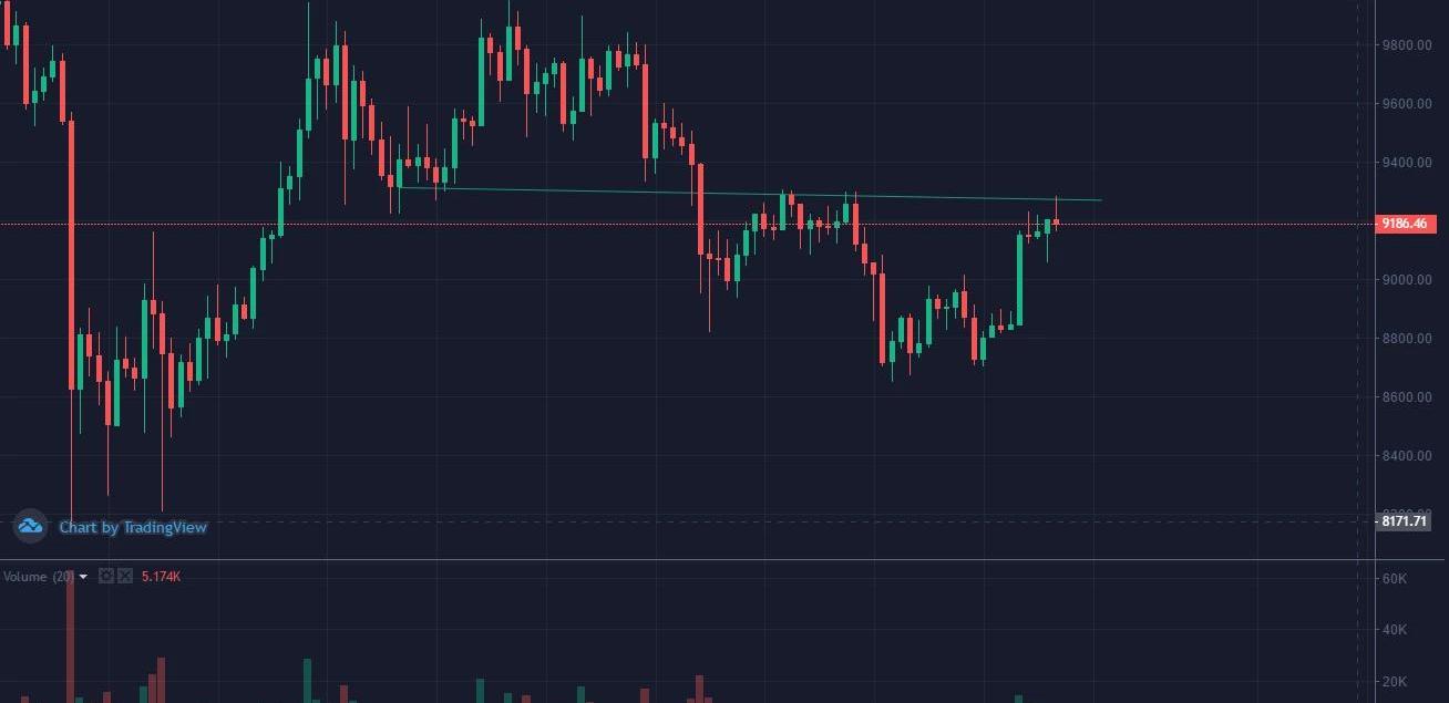 建议9260附近空单入场,止损9340附近,目标8700附近,一旦止损,立即反手,目标9600附近。