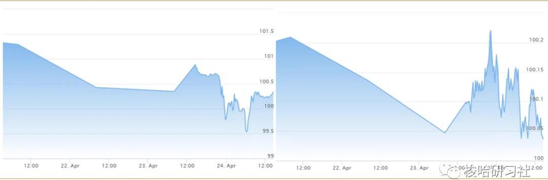 注:USDT场内折溢价指数是根据多个交易所中BTC/USD、BTC/USDT、USDT/USD等交易对进行折算,是USDT与USD的百分比比值,反映了场内交易者对USDT的偏好程度。USDT场外折溢价指数是根据USDT的场外价格及离岸人民币汇率进行计算,是USDT与USD的百分比比值,反映了资金出入通证市场的拥挤程度。指数为100时表示USDT平价,指数大于100表示USDT溢价,小于100则表示USDT折价。