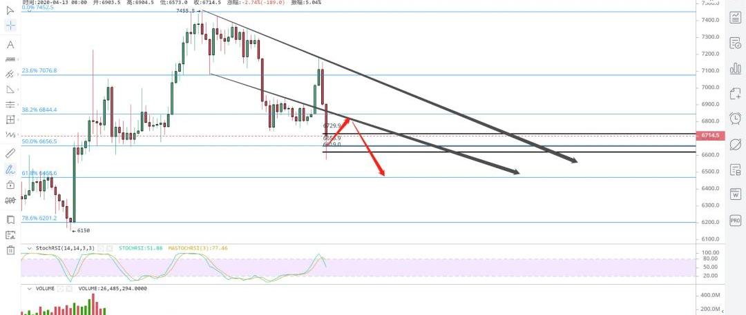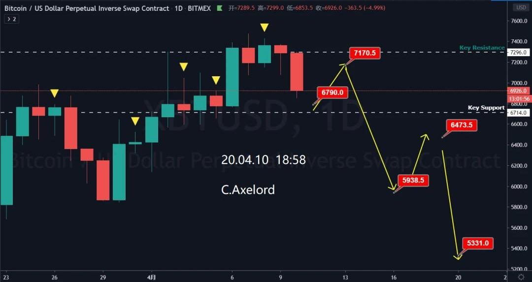 期待的空头反转信号终于到来!4.10号提前给大家安排了个剧本,预期价格会在6750附近获得支撑转而向上测试7195失败,然后放量快速下杀,目前看来完全正确