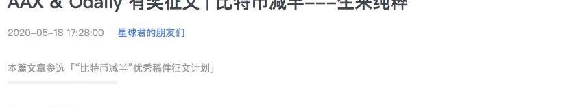 于是我们想来聊聊大家关心的话题。比特币减半的前一周,AAX交易所联手Odaily星球日报共同发起了“比特币减半征文奖励计划”,目前为止已经收到了来自行业里50多位创作者的投稿文章,以下是我们精选的部分文章~