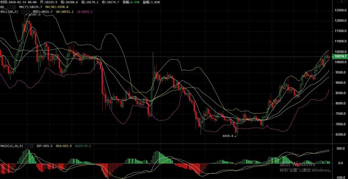 当K线突破各路均线之上时,行情开启,起先的阶段是币价缓慢上涨,并在短期均线处获得支撑,随后开启主升浪行情,币价大幅上涨,多路均线呈爬坡模式,这是很明显的趋势行情,只要不是在行情的中后期,均可以紧跟趋势买入。综上,对于主流币来说,一开始没有介入进去,等回调买入方法最优,对于大部分山寨币来说,止损买入可以减少犹豫和等待的成本,以及避免被套牢的风险,而对于趋势追进,需要大家时常观察各种币的走势,从中发现,而对于币市来说,几乎每个月都有这样的趋势行情币种。