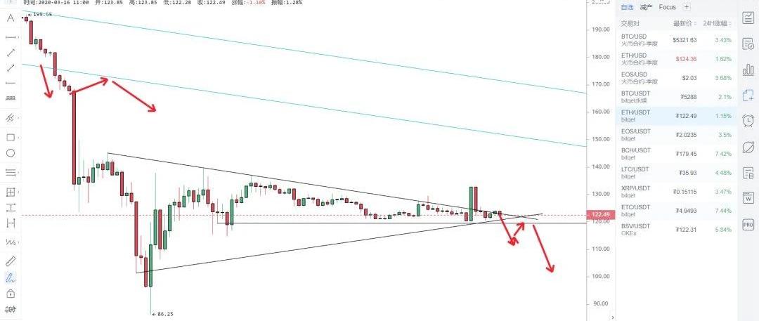 同样的压力收敛末端,大概率走势会和上一波下方差不多,不能突破关键压力的话均可介入做空,如果向下突破关键支撑,轻仓追空即可,关键压力:138,关键支撑:118、86