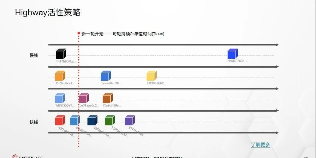 活性意味着这个协议始终能就区块链的下一个顶点达成共识,而安全性则意味着决定应该是不可逆的。CasperLabs设计了Highway协议,是CBCCasper的第一个可证明活性且安全的实现。Highway协议与CasperFFG不同,它完全排除了PoW。