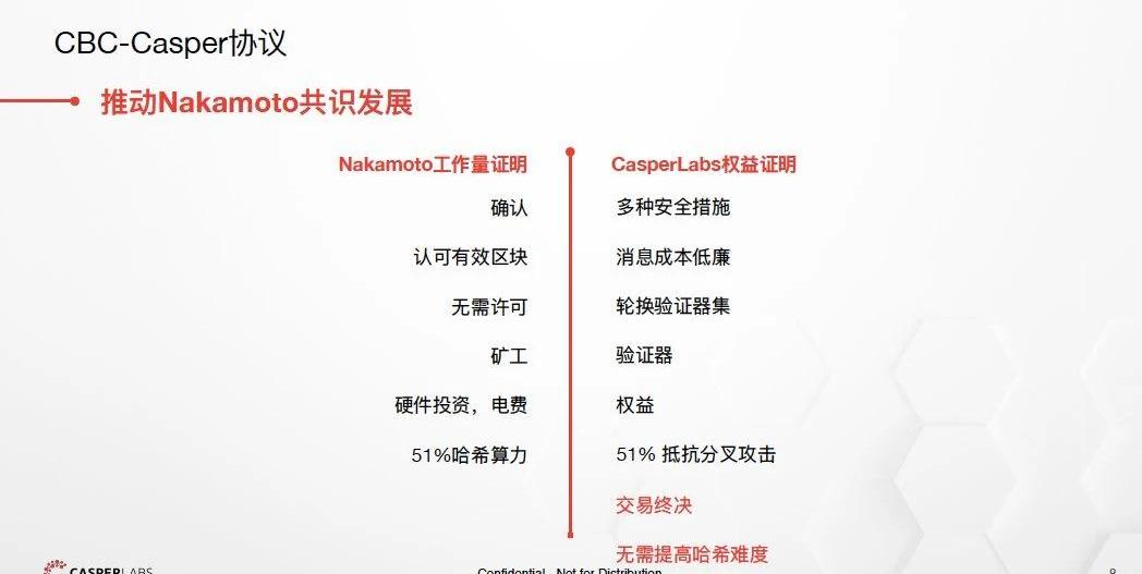 首先需要理解的就是以太坊使用的是Casper\nFFG协议,它本质上就是在POW机制上再叠一个,属于将基于POS的终局性添加到POW网络的一个混合协议。但是CasperLabs则投入了大量精力研究活性问题,所以我们的协议从一开始就是纯粹而且是正确的POS机制,它不包含POW。