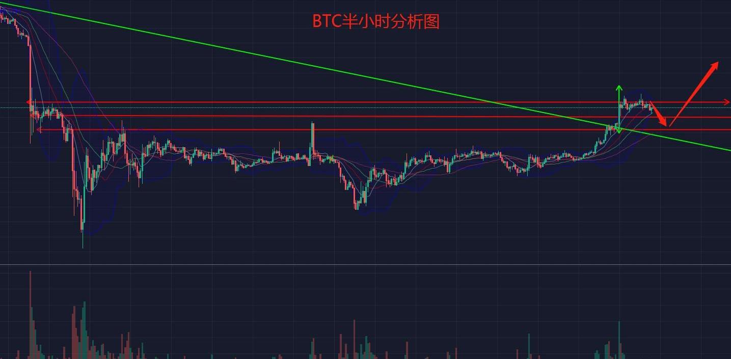BTC今日分析:大饼价格在昨日晚盘给出了爆发式行情,强势突破5450,比我们之前预测的找到了半天,价格开始直线拉升,在5800一线得到有效抑制,今日开盘价格直接站稳5800上方,持续多头持续发力给出了一波井喷式上涨,从目前半小时k线图分析,上方压力位在6300一线,下方支撑6000点,第2支撑5800,也就是说今日需注意的几个定重要点位为6300,6000,5800,日内操作思路,以高空低多主空思路入场操作,后期预测:如果价格回踩6000点,附近,激进的投资者可以选择多单入场,若6000点被强势突破,那么下一支撑位则考虑在5800附近,若价格可以给到5800一线,则可以选择加仓多单抄底入场,目标位7000~7300点。