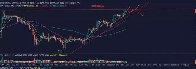 再看当下的市场共识:10000美元是强压力位。此时10000美元又成为大家都了解的近期机会,是突破还是回落目前我们是不得而知的。但我们可以考虑的操作是,持仓者考虑可以接近10000美元时选择减仓,如减少5成仓位甚至减至3成仓位,剩下的仓位设好止损。此时我们既规避了临近10000美元附近空头反扑的风险,又保证了原本5成仓位的盈利落袋为安,还能防止一举突破10000美元时的踏空。