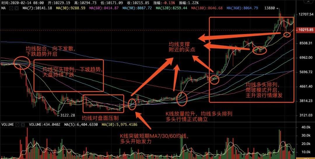 必须要说的是,K线基本形态、趋势线分析、MA均线指标、支撑压力位等技术分析的知识,是用来辅佐我们判断市场行情、进行复盘的重要工具。对于想在币圈赚钱的投资者来说,必须要会用,不求活学活用,至少少要能大概的看懂一些趋势和行情,让自己的主观判断和投资行动有一定的参照。切忌什么都不参照、一味盲目偏执,和胡乱操作。