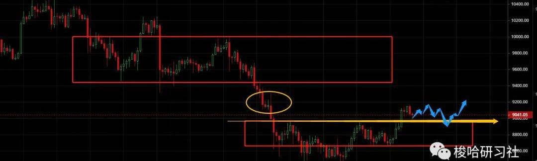 日线早盘收线,对多头还是稍微有利,走弱迹象不是很明显。操作上9000以上企稳下不去还是可以多单操作。30分钟虽然出现回落,但还是属于本级别买点区域,接下来重点关注回踩力度,一旦回踩深了,反抽尽量空单操作。