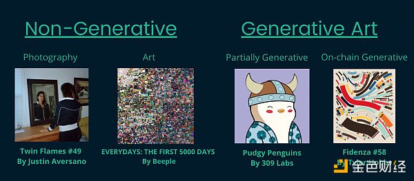 NFT 最流行的用例是将 NFT 作为可收藏的艺术品。 NFT 为艺术家提供了一种在确保所有权的同时轻松将其艺术作品出售给全球观众的方法。艺术 NFT 可以大致分为两类:非生成艺术和生成艺术。