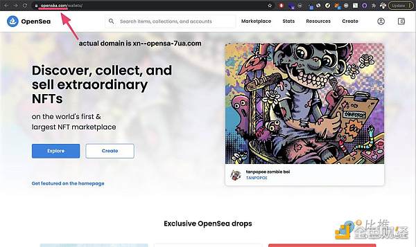 为 OpenSea 等经过验证的网站添加书签——它有助于防止登陆虚假页面。