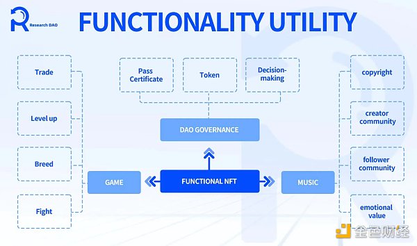 DAO被推测为下一代公司(的表现形式)。它们为协调全球投资和社区提供了一种新的组织形式。如今,许多DAO组织正在兴起。在治理方面,将使用多种形式的NFT,功能NFT就是一个可能的例子。