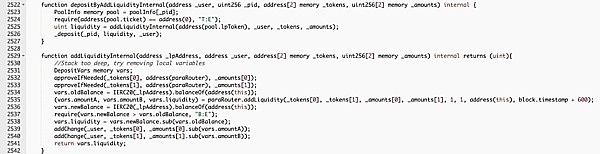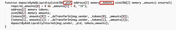 然后,攻击者调用 "depositByAddLiquidity() "函数,将LP代币存入资金池。