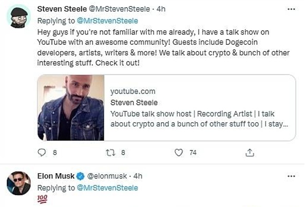 几天前马斯克“预告”正在认真考虑构建新型社交媒体平台,YouTube加密播主Steven Steele 回应称,不管马斯克收购推特还是创建自己的平台,他肯定会让这个新型社交媒体平台支持狗狗币(DOGE)小费功能。