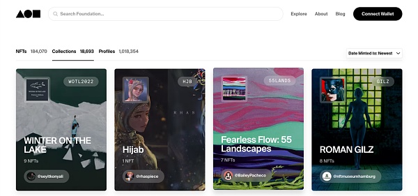 专注于高质量创意和艺术的邀请制社区,使用自动限时拍卖的销售方式,平台上艺术品种多为精心策展和生成专业化的艺术品 NFT,也包括音乐和 memes 等。