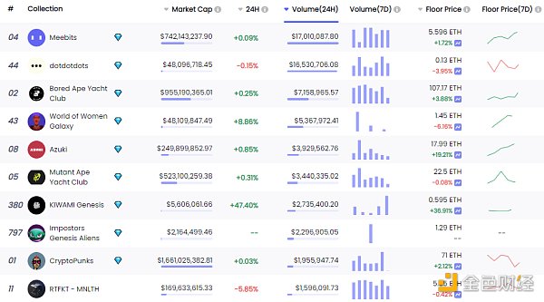 24小时内销售涨幅前十的NFT 数据来源:NFTGO