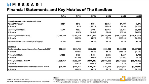 与此同时,相对于 2021 年第二季度,初级 LAND 销售增长了 23%。初级销售的对象是新发行的 LAND 地块,通常出售给合作伙伴或通过拍卖。尽管如此,2021 年第一季度,主要 LAND 销售额(1600 万美元)仅占市场 LAND 总销售额(1.36 亿美元)的 12%。