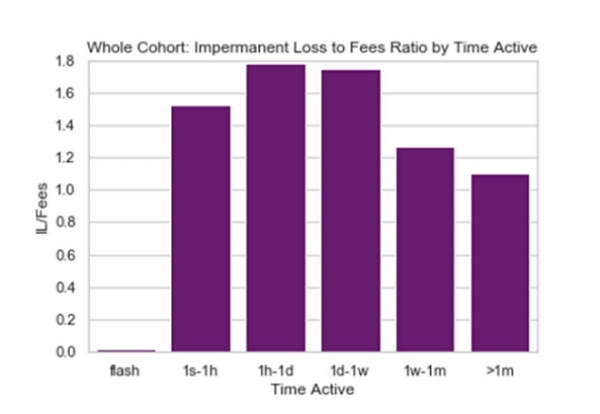 根据报告中汇编的数据,49.5% 的整体流动性提供商由于无常损失而没有任何收入,处于亏损状态。如果我们将流动性提供商视为一个整体,它同样由于IL而处于亏损状态。因此,Uniswap V3 目前不是一般流动性提供商赚取高预期收益的平台。