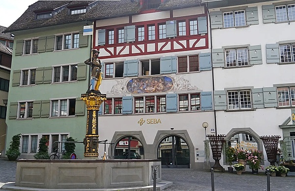 这座前市政厅建筑对于任何游览瑞士丰富建筑的旅行团来说,都是一个受欢迎的观赏点。然而,可能让旅行团感到惊讶的是,每个进出这栋建筑的人都穿着正装。一个未来风格的标志位于门顶——上面写着“Seba Bank”——象征着比特币的“?”符号透过窗户“凝视”着外面的鹅卵石小路。
