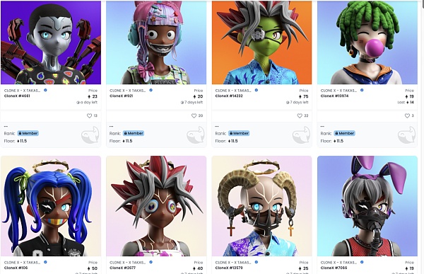 我们来看几个当下热度最高的NFT蓝筹项目: