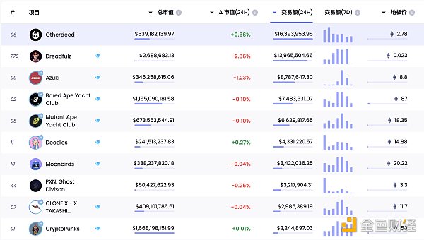 24小时内销售涨幅前十的NFT 数据来源:NFTGO