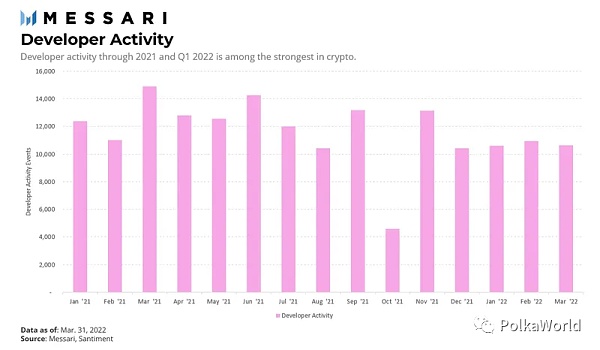 Polkadot 的开发者活动仍然是加密领域中最活跃的。