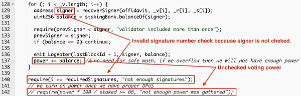 L142中的必要语句被注释掉了。因此该合约在更新价格时并未验证该调用已收集到足够的签名。