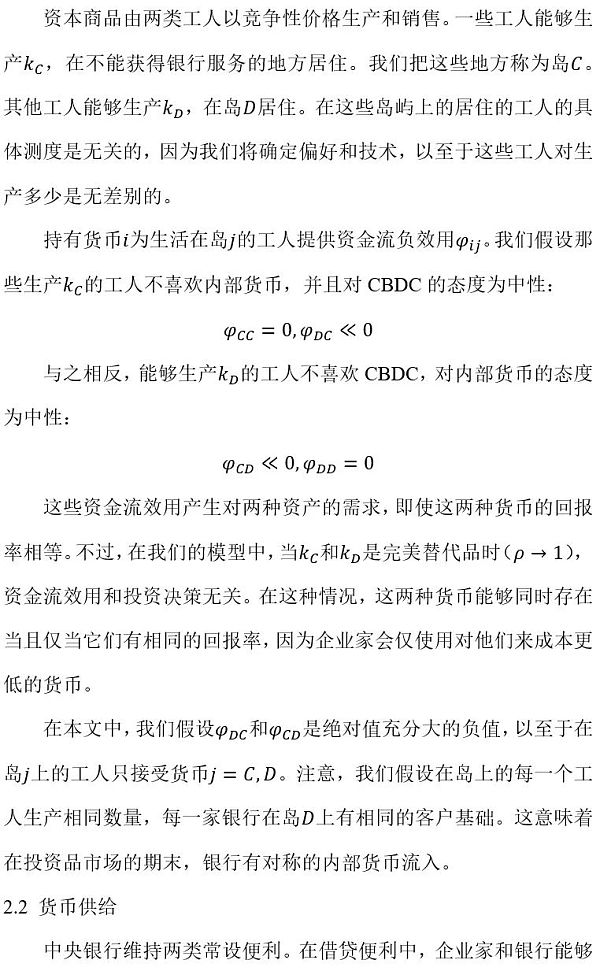 我们将CBDC对在经济周期中的货币政策传导或者金融稳定的影响留给未来的研究。在我们的设定中,价格是易变的,货币是中性的。此外,资产是安全且流动的。因此,我们的模型框架可以说明CBDC对稳定状态的影响,即金融系统的结构性变化。