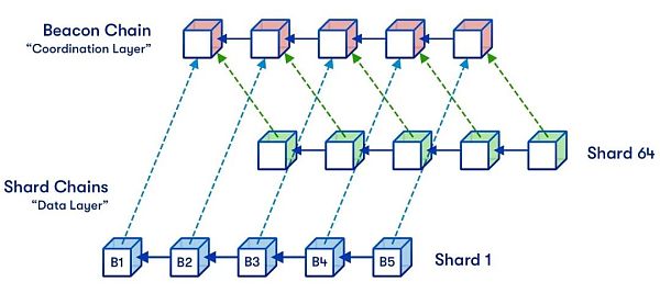 信标链(Beacon Chain)是一个完全独立的去中心化网络,与以太坊主网并行运行,使用权益证明共识机制,而不是以太坊当前的工作证明共识机制。