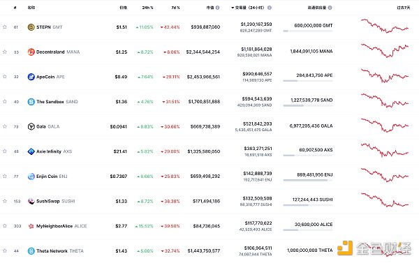 NFT总市值、市值排名前十项目 数据来源:coinmarketcap