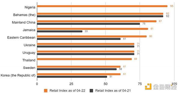 图:零售 CBDC 指数排名前十的国家 / 地区