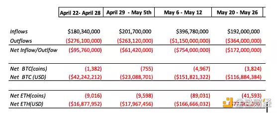 Terra 崩溃后(5 月 6 日至 12 日),有 7.5 亿美元的资金流出(1.5 亿 ETH 和 1.5 亿美元 BTC)。