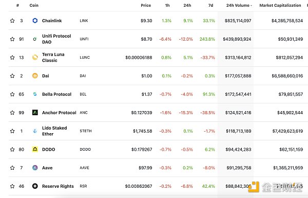 过去24小时去中心化交易所的交易量 数据来源:coingecko