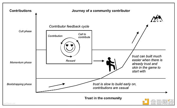 举个例子,Index Coop(一个在 DeFi 世界里运行最好的 DAO,将多种资产捆绑成指数金融产品的网络,有着最为明确的目标,且为贡献者带来了十分舒适的体验的组织)就运行得非常好,该组织不止有一个社区,并且成功的开展了好几个,全世界的人都可以加入、参与并且贡献价值。让 Index Coop 在众多 DAO 中脱颖而出的方式之一就是:他们提前设置好了每一个参与者进入该社区后可能会遇到的困境以及相应解决方法,每一步都经过了深思熟虑和精心计划。