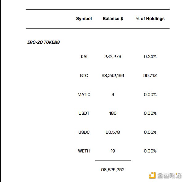 为什么要搞财库多元化呢,我们来看下面这张图。这是去年9月的财报,财库里99.8%的资金为GTC的治理代币。