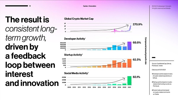 尽管加密周期看起来很混乱,但从长期来看,新创新、代码、项目和创业公司已经在稳步增长——这些都是软件创新的根本驱动力。技术专家和企业家将在未来几年继续推动加密技术的发展,我们很期待看到他们的成果。