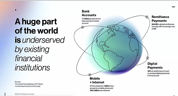 目前还有17亿人没有银行账户,对去中心化金融(DeFi)和数字美元的需求急剧增加。DeFi有潜力解决这些问题。